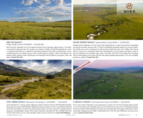 conveniently located near the I-25 corridor just southeast of Pueblo. The 69,126± deeded-acre ranch The 3,422± acre ranch is located just 25 miles from the world class resort of Sun Valley. Silver Spring