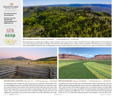 BEAVER MESA LIVESTOCK Placerville, CO | 2,258± Deeded Acres | $7,150,000 RED ROCK RANCH Bedrock, COLORADO | 1,420± Deeded Acres | $5,950,000